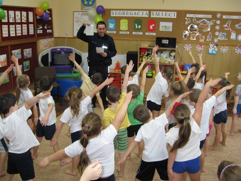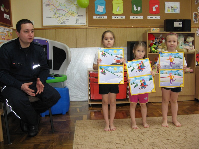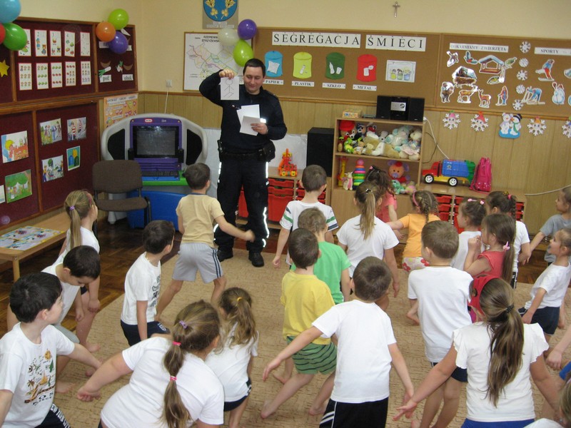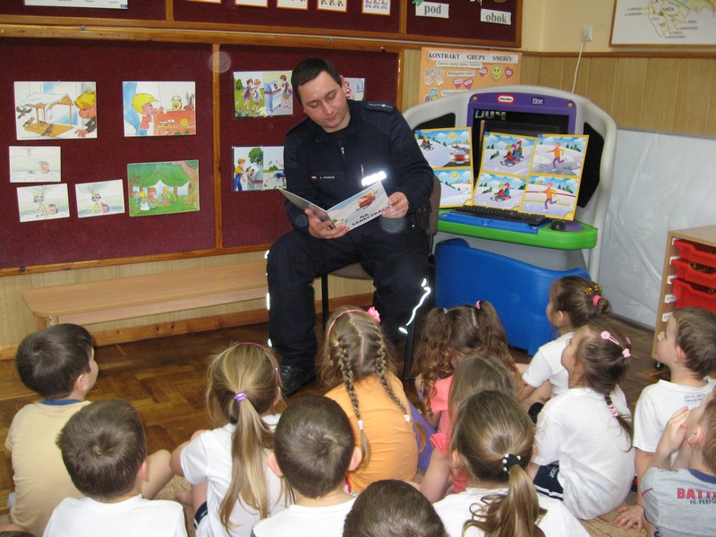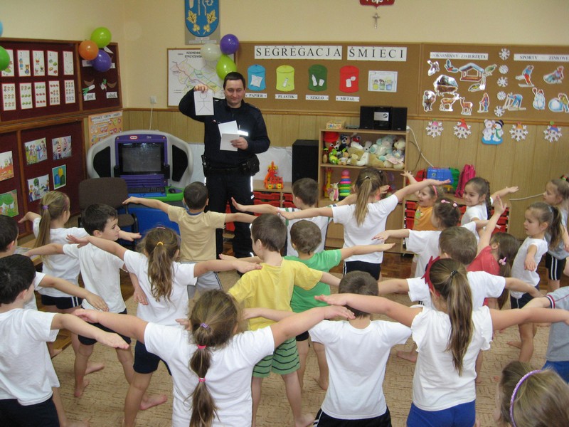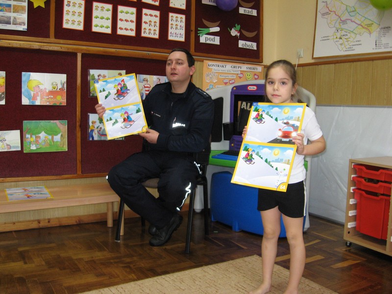 Celem wizyty pana policjanta było omówienie zasad bezpieczeństwa,