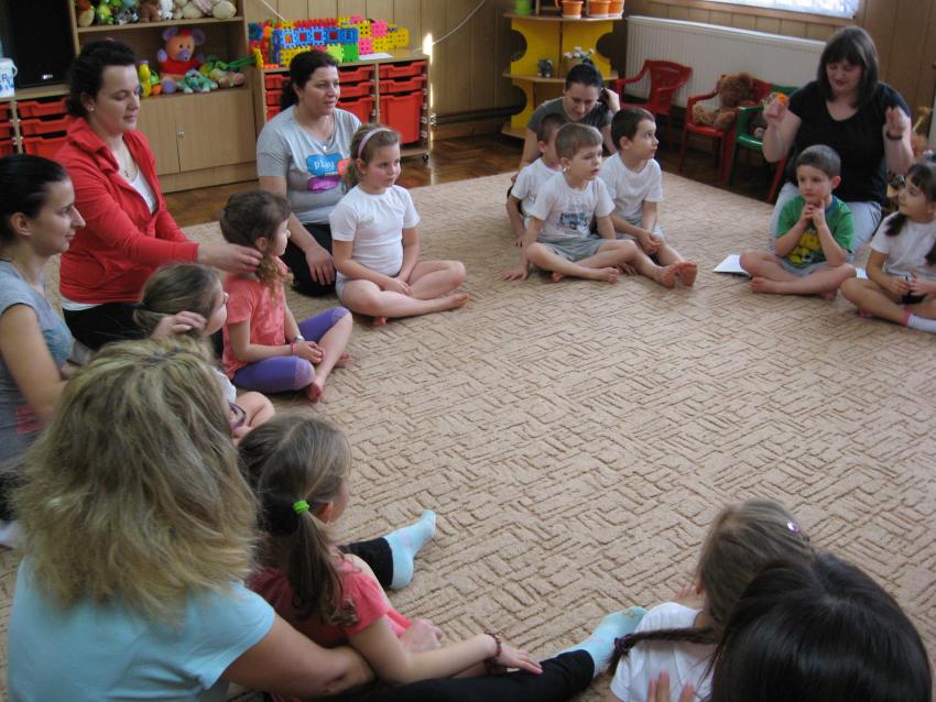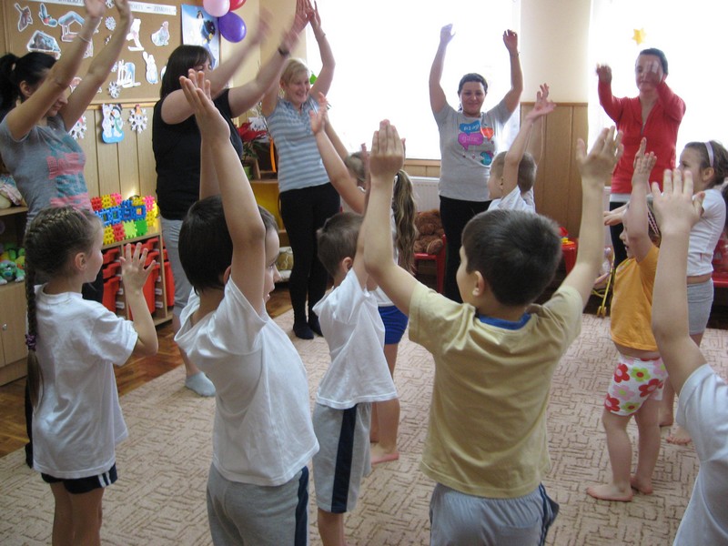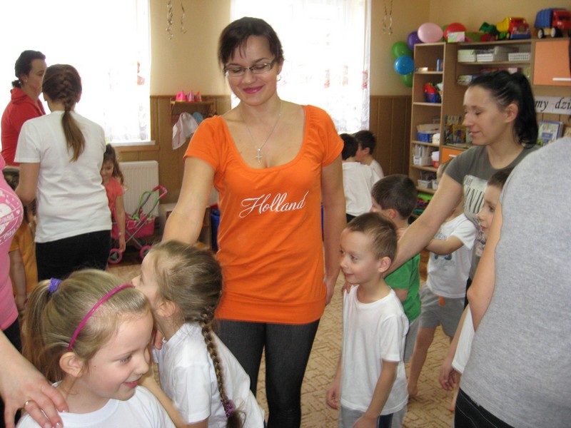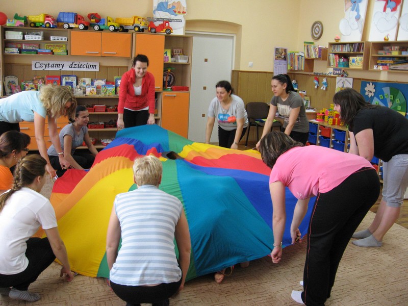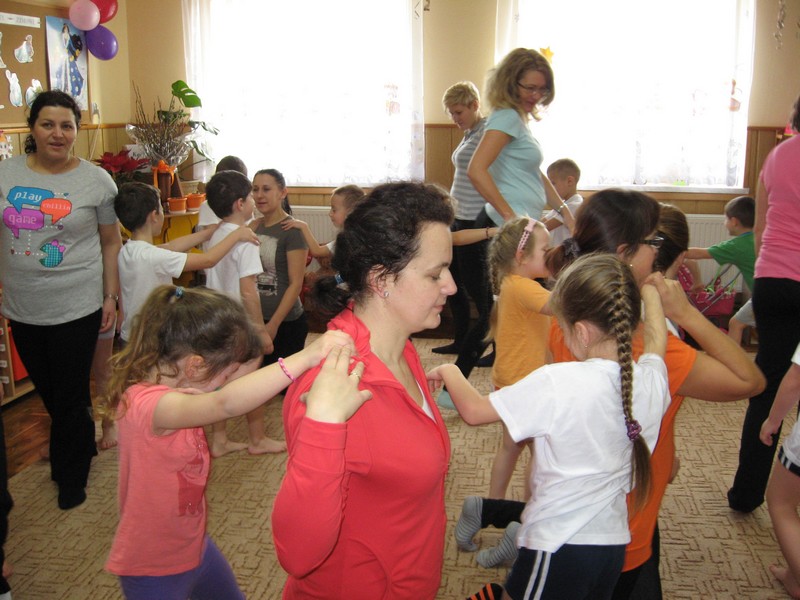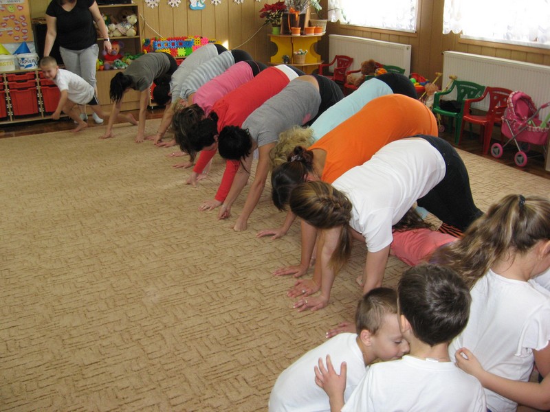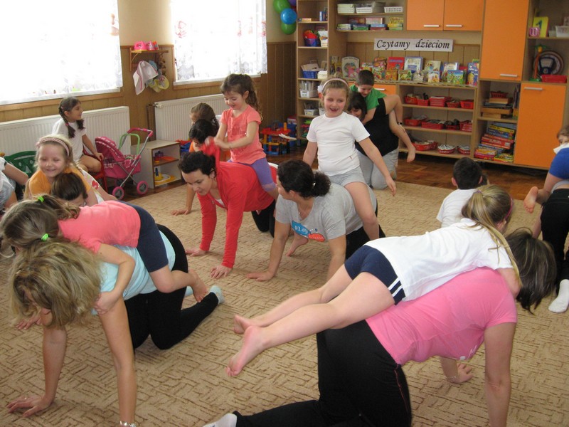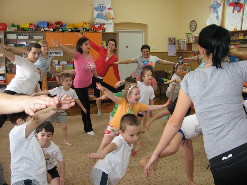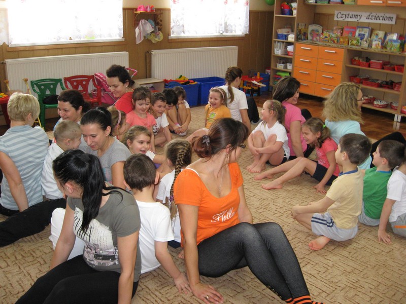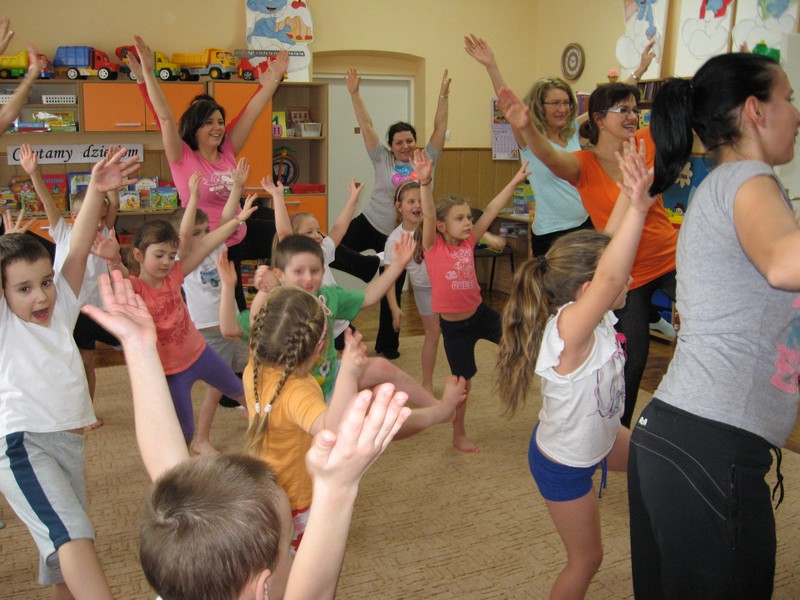 Wspólne zjęcia ruchowe dostarczyły zarówno dzieciom, jak i rodzicom przyjemności i zabawy.