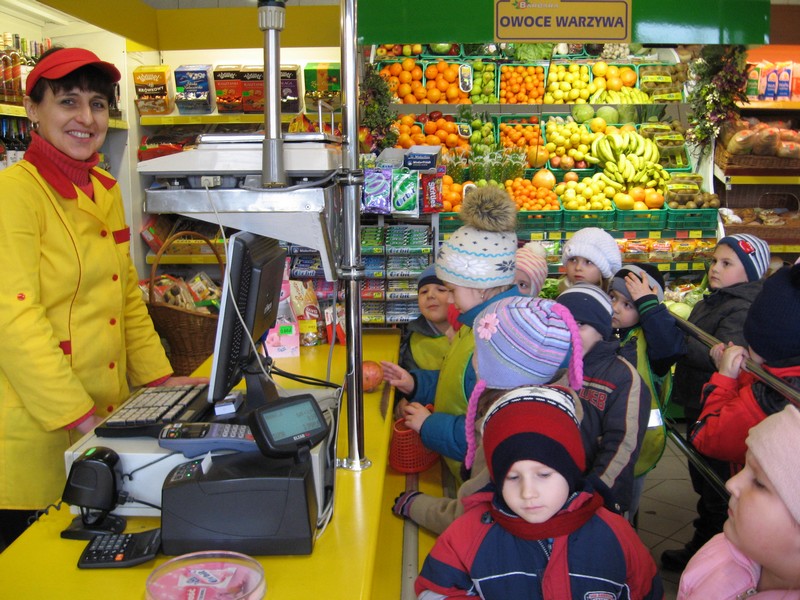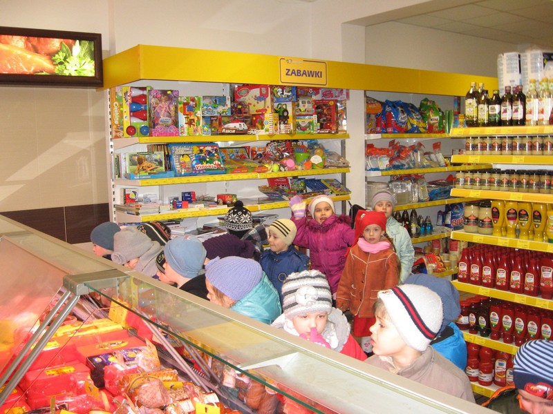 przedszkolaki mogły przyjrzeć się wyposażeniu sklepu, pracy ekspedientek.
