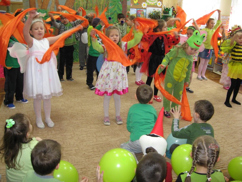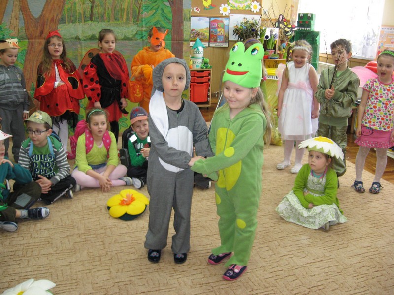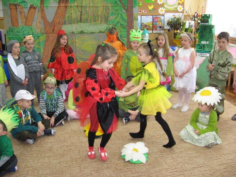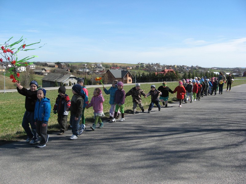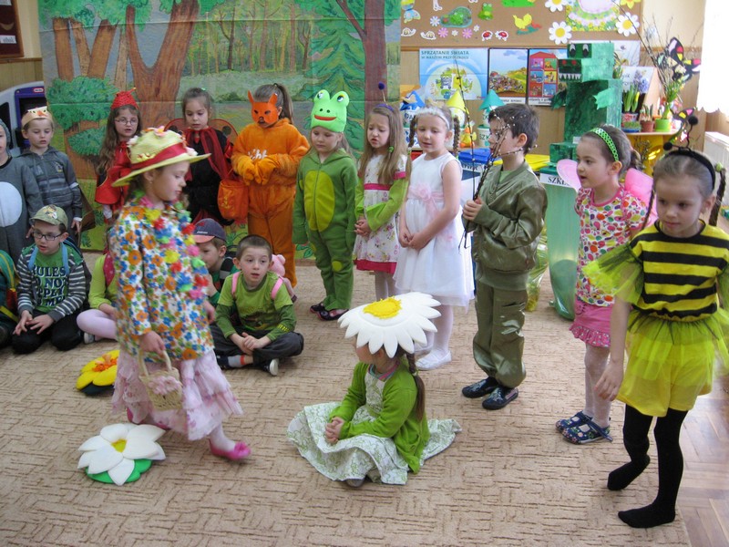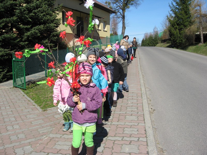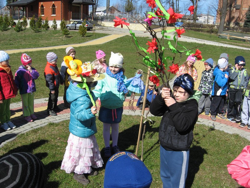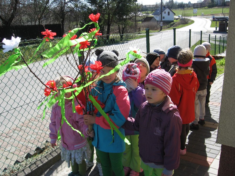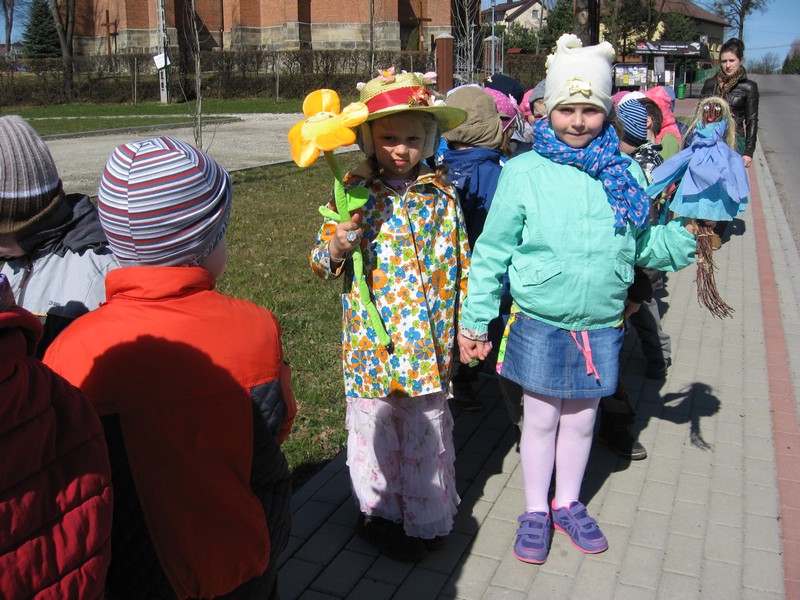 Pierwszy dzien wiosny przedszkolaki powiatły radośnie: