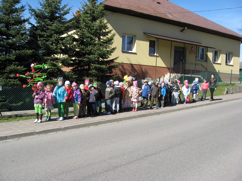 Następnie korowodem z kolorowym gaikiem, kukłą Marzanny i Panią Wiosną