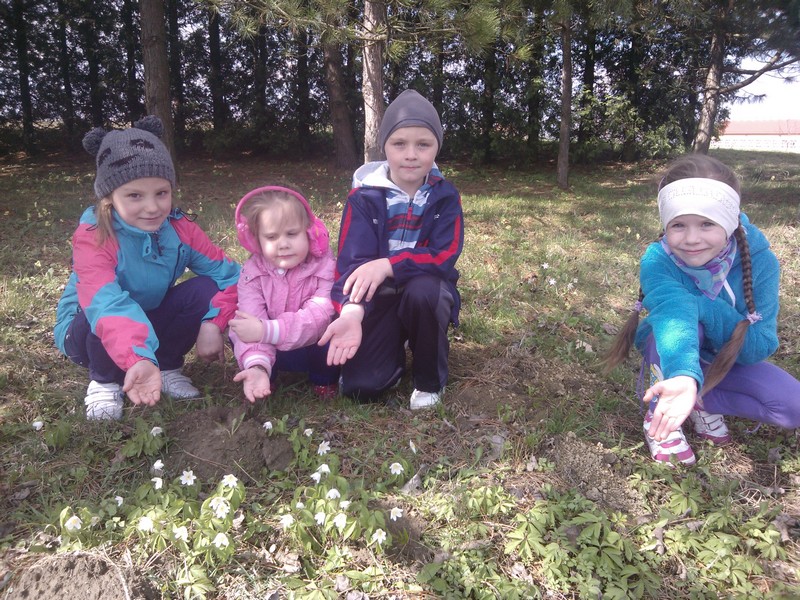 pierwiosnki, zawilce, stokrotki i żonkile.