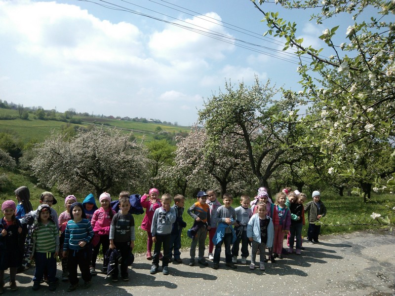 Dzieci mogły oglądać jabłonie, śliwy, grusze pełne białych i różowych kwiatów.
