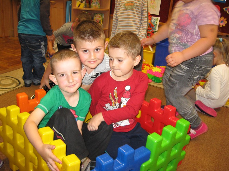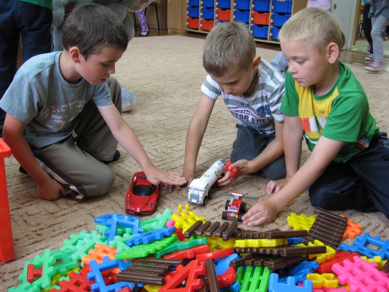 Przedszkolaki bawiły się wspólnie, wymieniały zabawkami, pomysłami.
