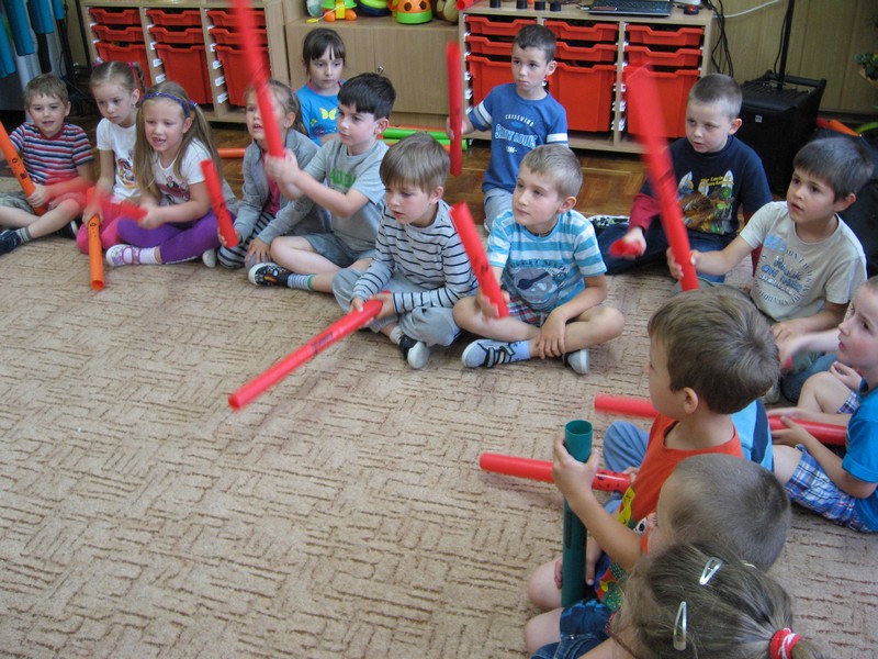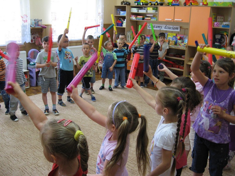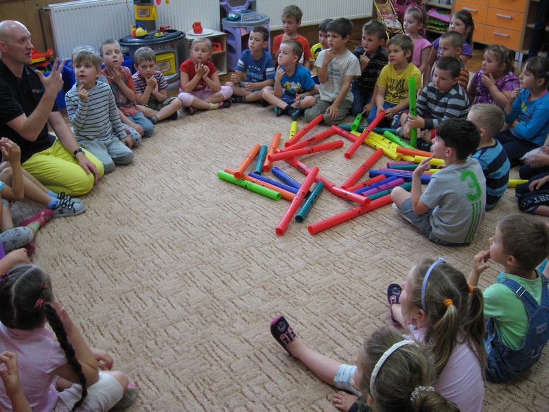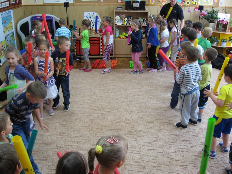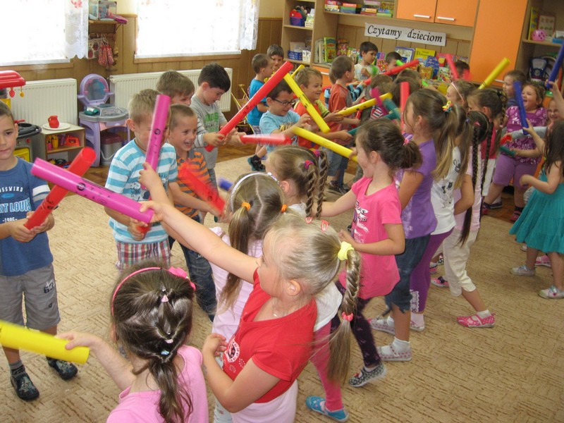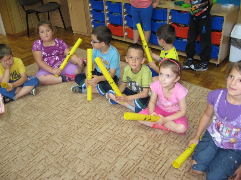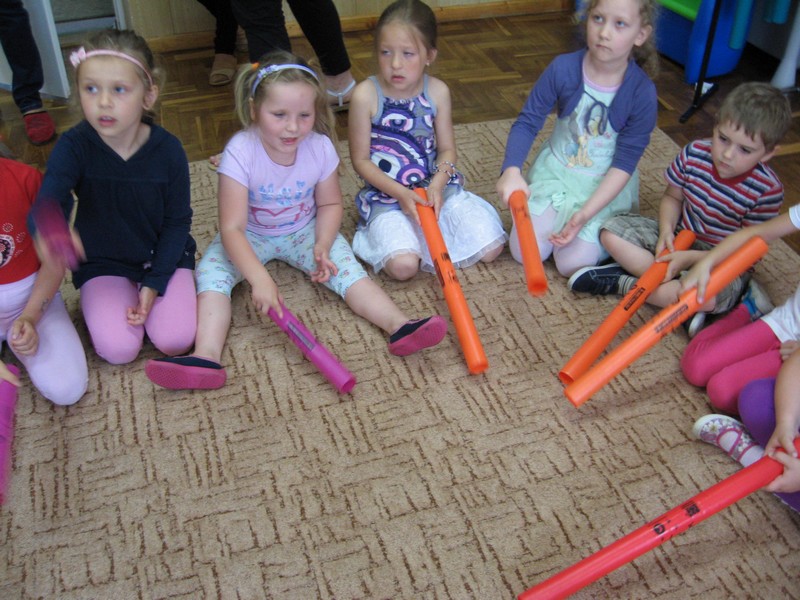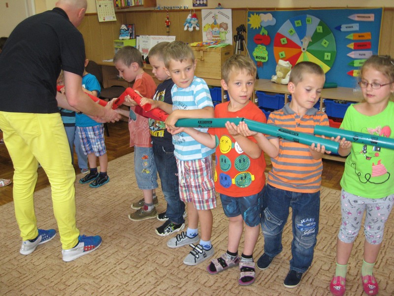 z wykorzystaniem kolorowych rurek, nazywanych - Bum Bum Rurkami.