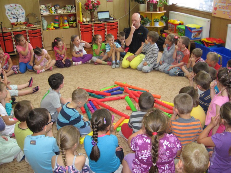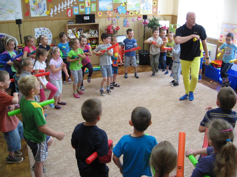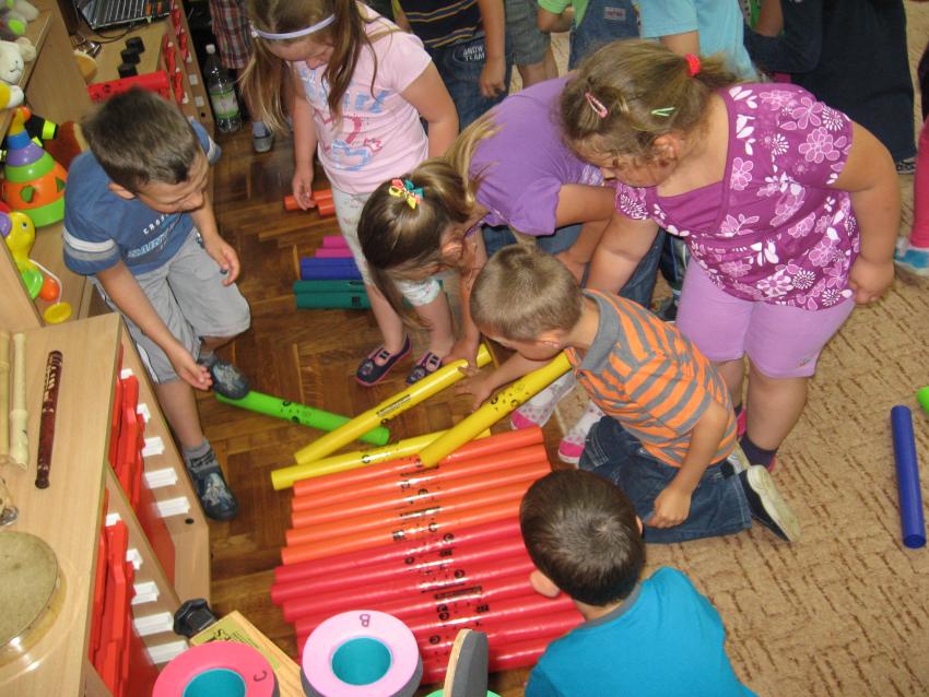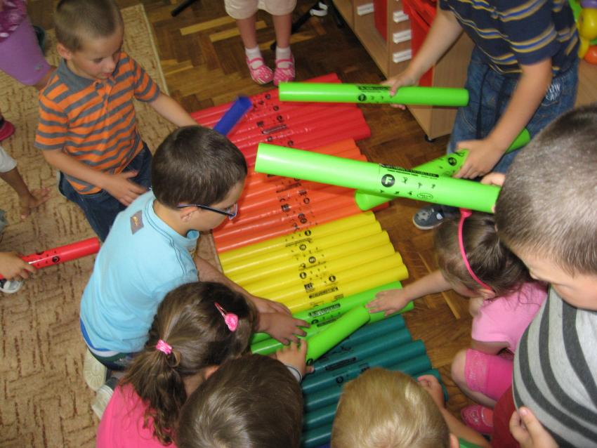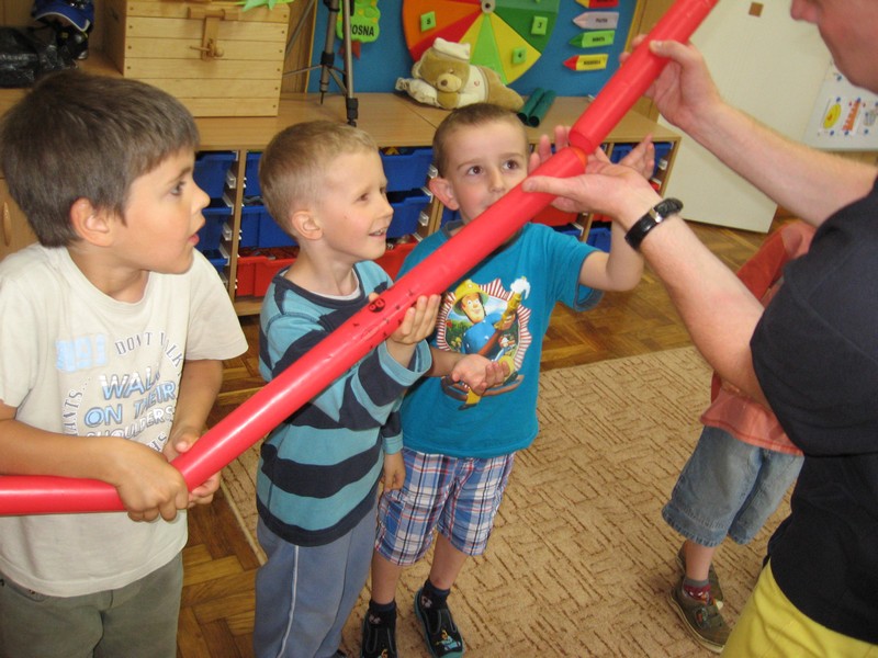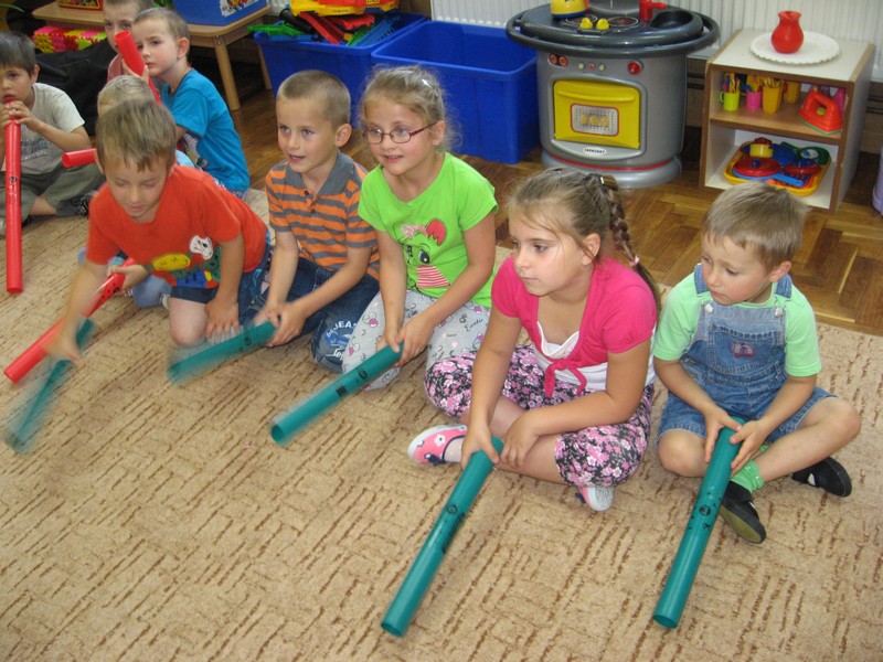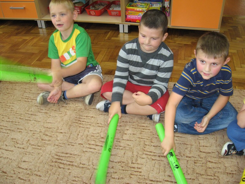 z wykorzystaniem kolorowych rurek, nazywanych - Bum Bum Rurkami.