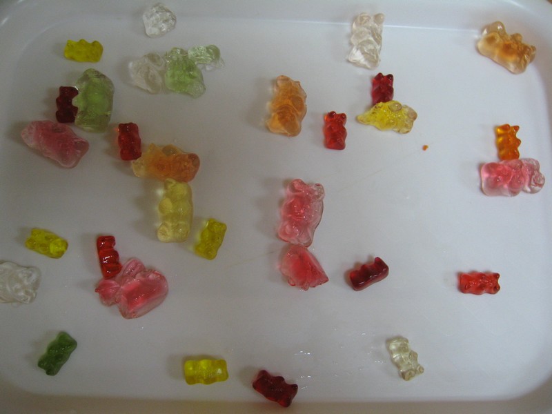 - włożyły do szklanki z zimną wodą żelkowego misia i zostawiły na kilka godzin.