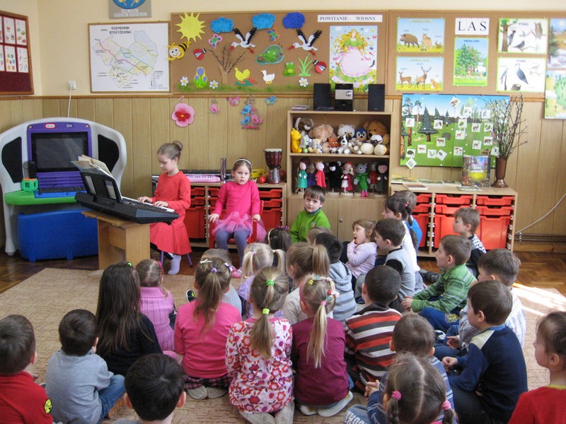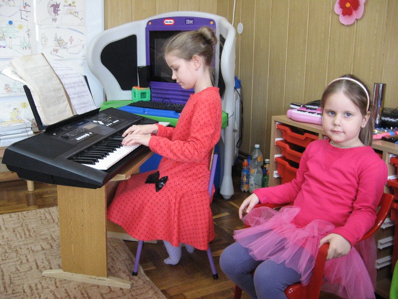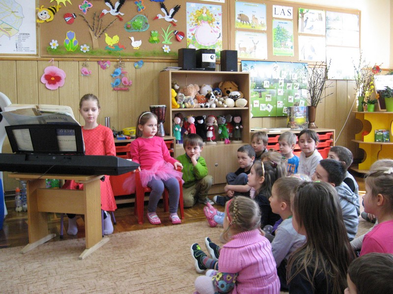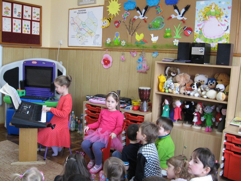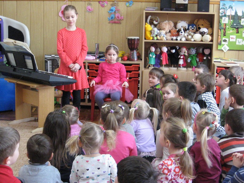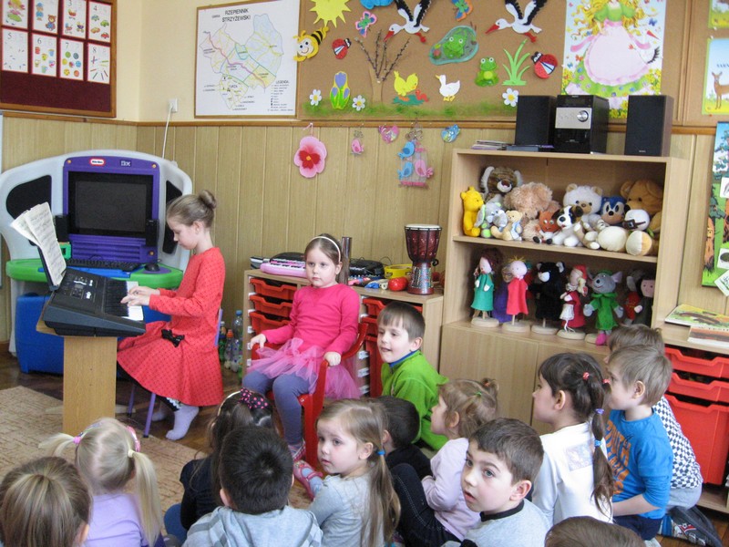 Opowiedziała młodszym kolegom o instrumencie na jakim gra w szkole muzycznej,