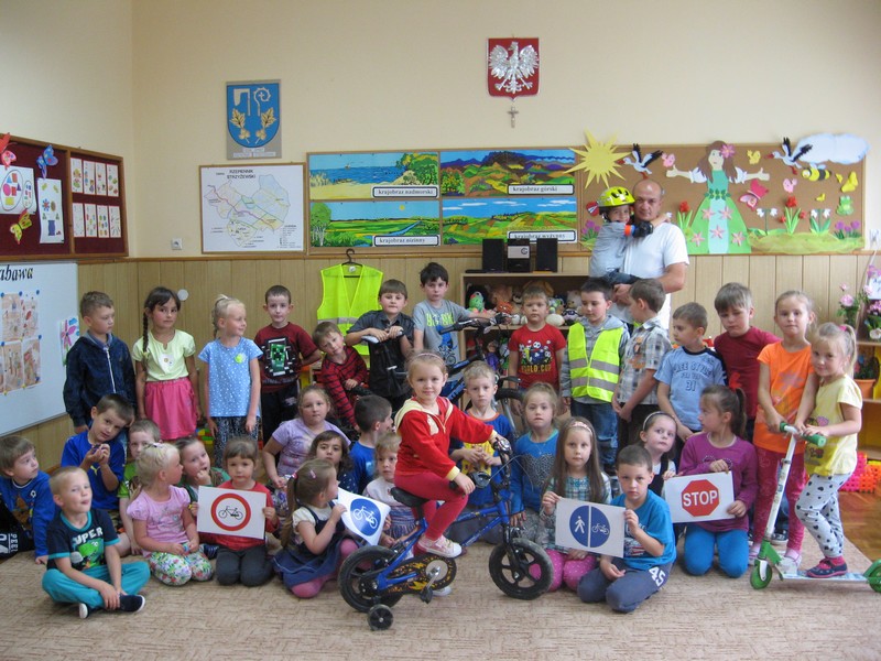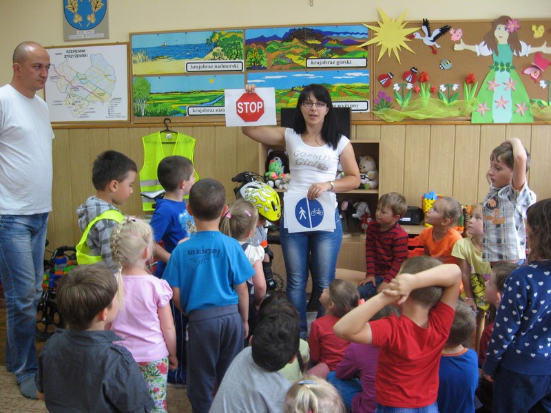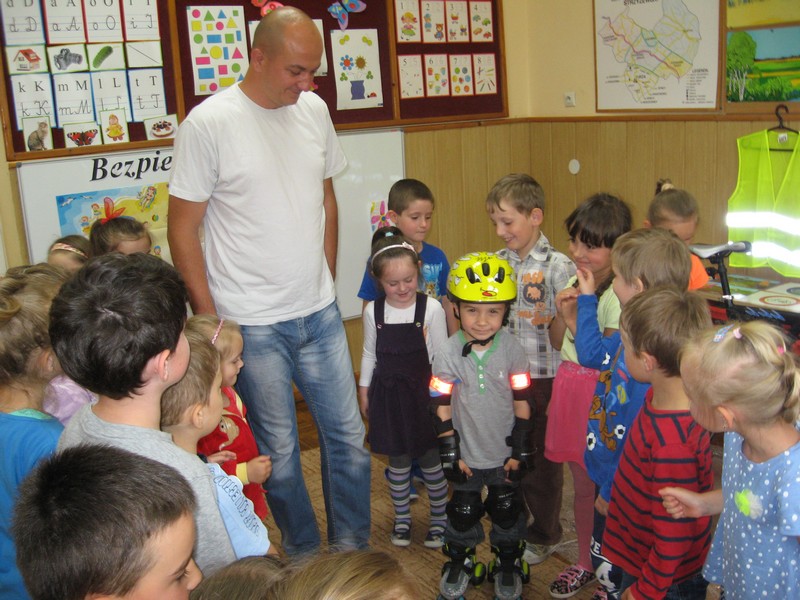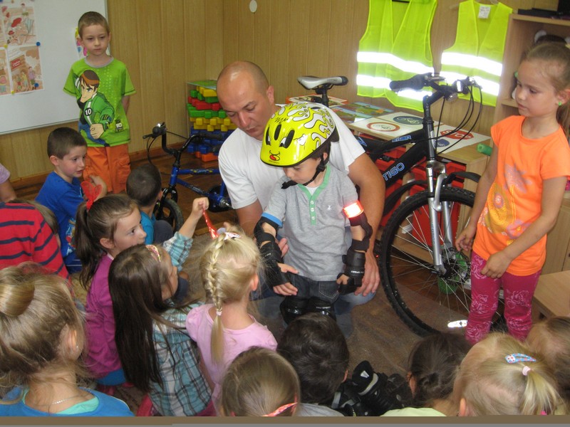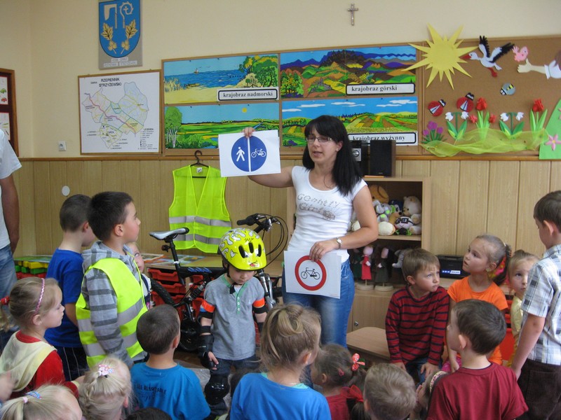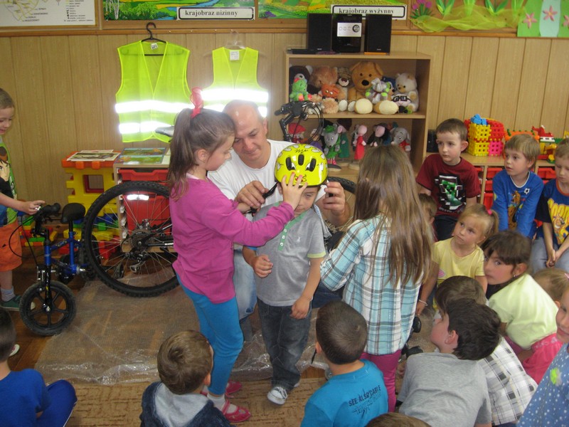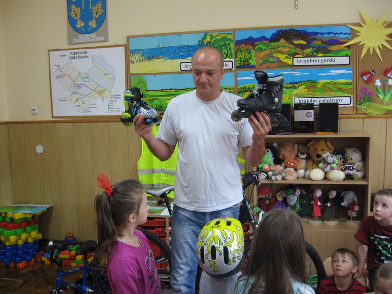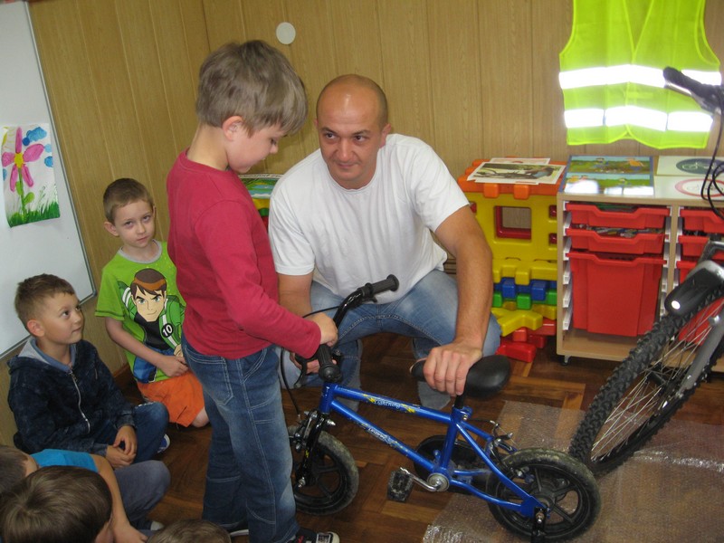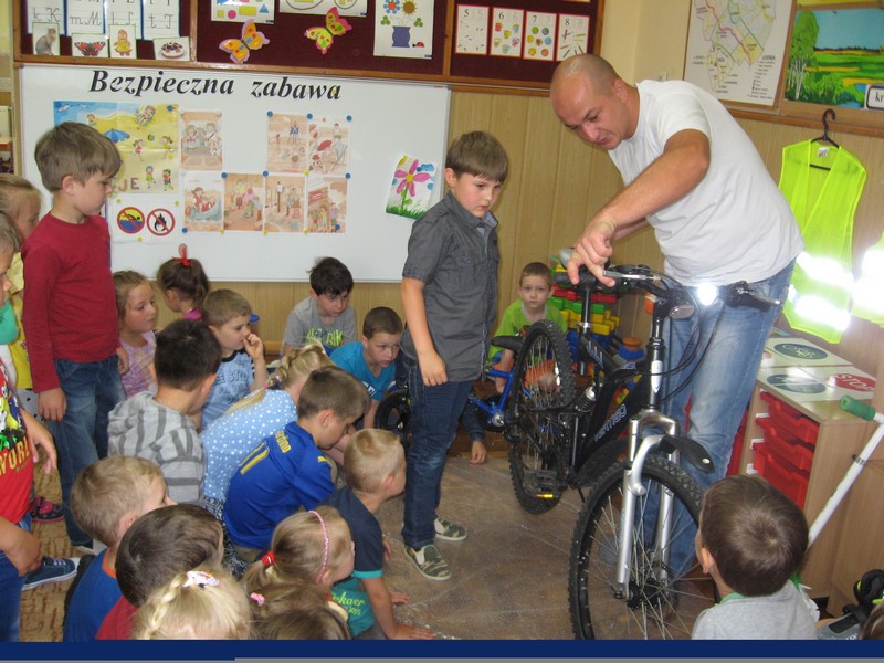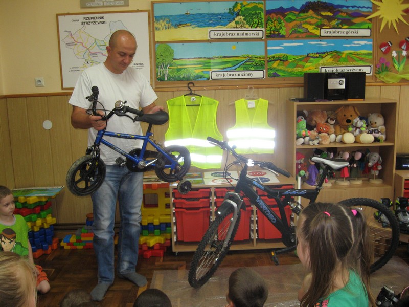 Wyjaśnił równiez zasady bezpieczeństwa podczas jazdy na rowerze,