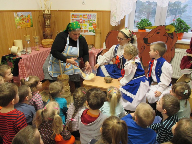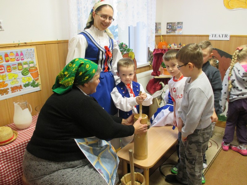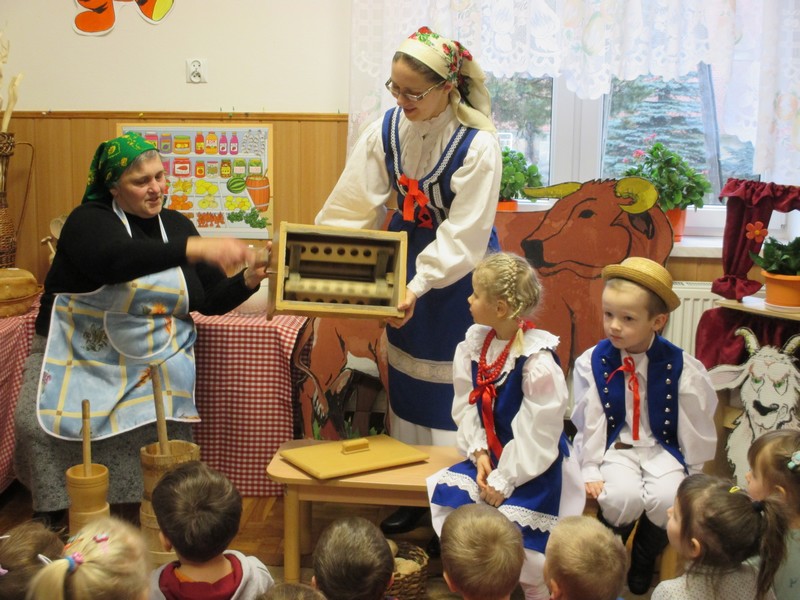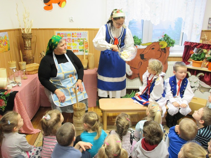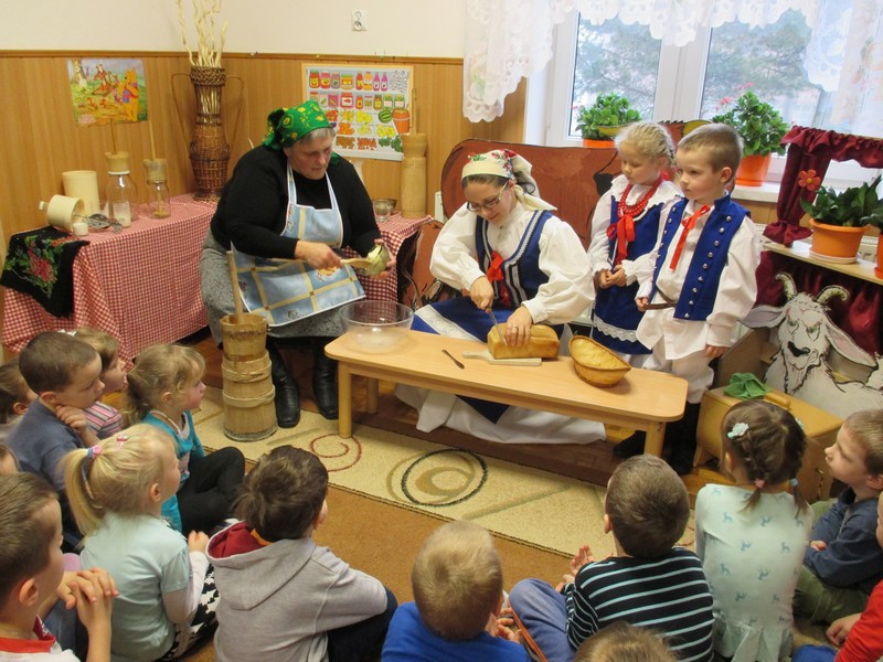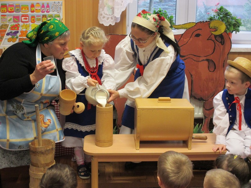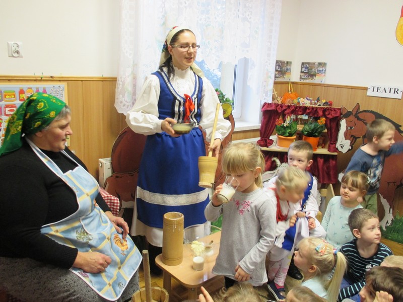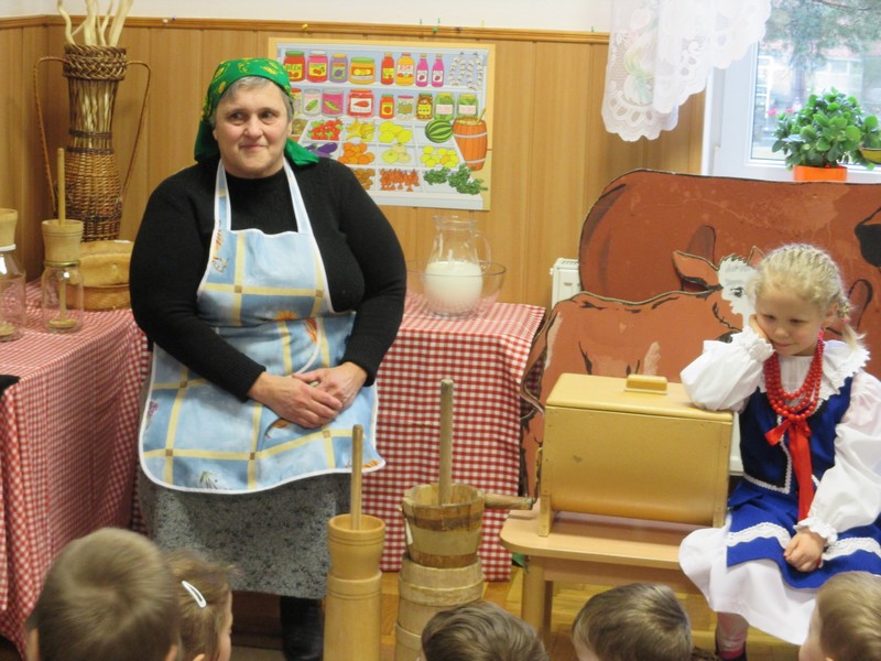 Zapoznała dzieci z przyrządami do wyrobu masła
