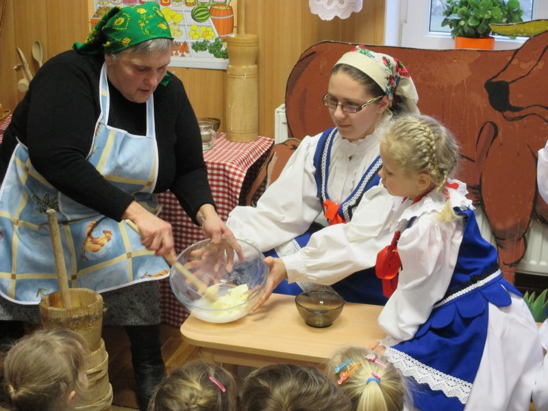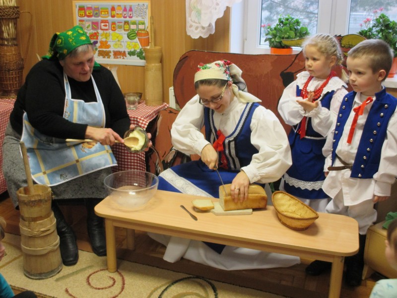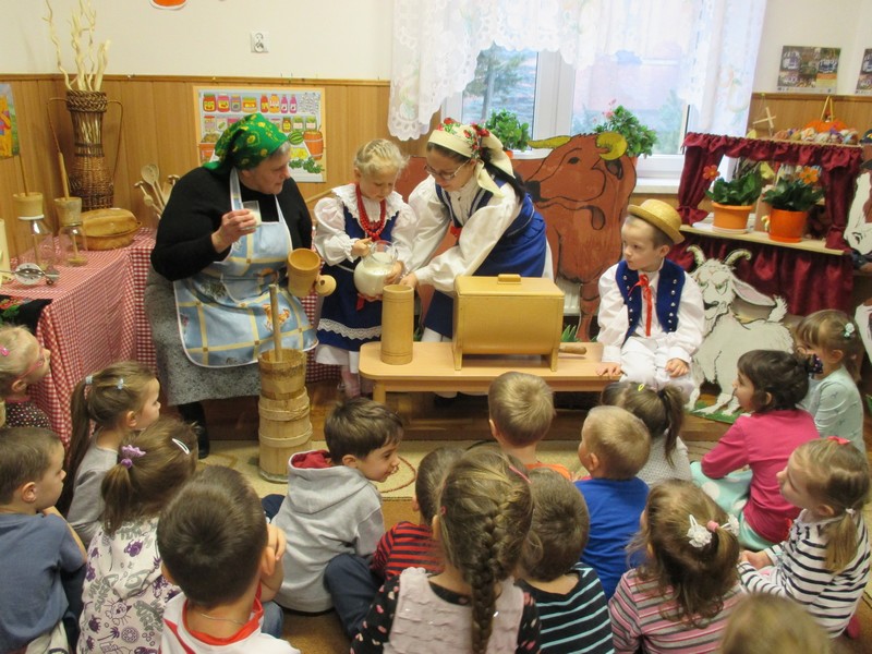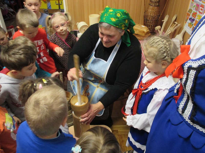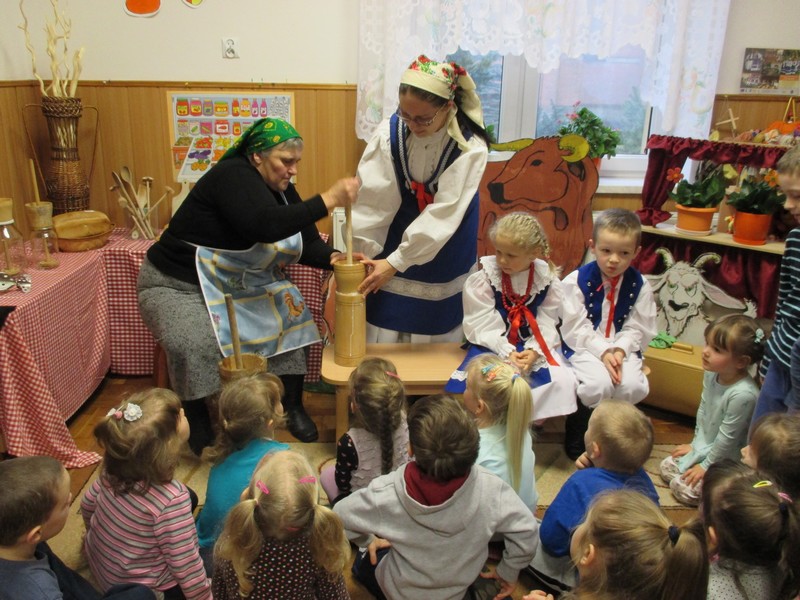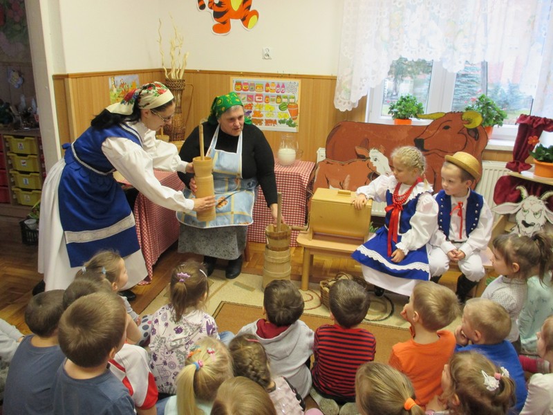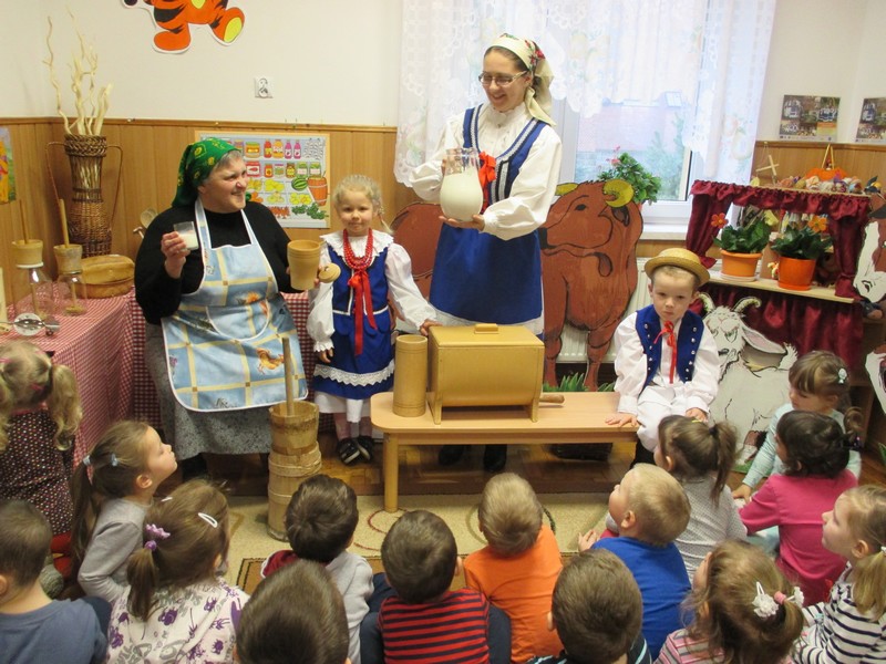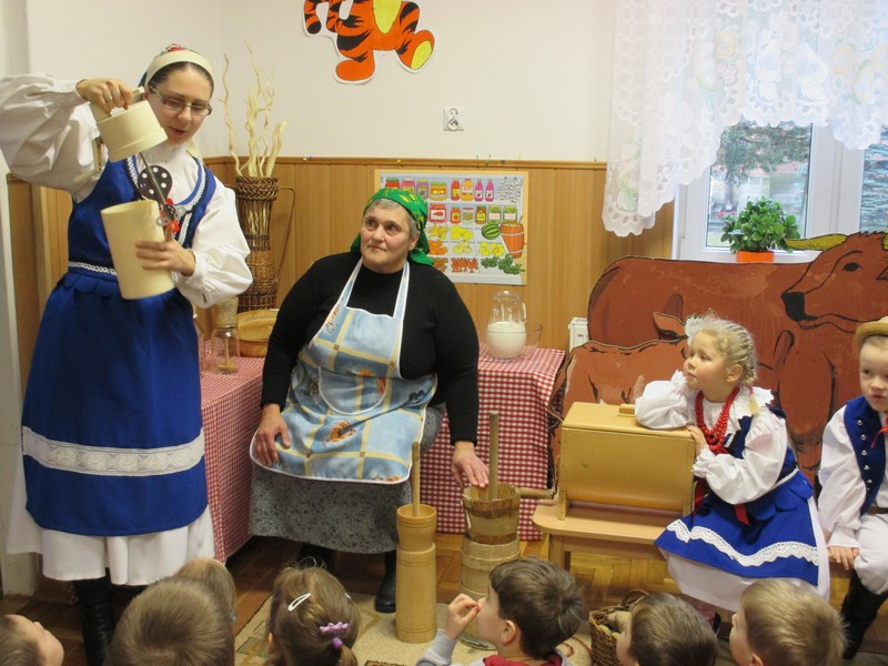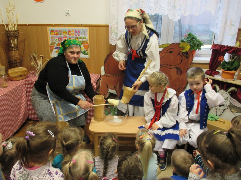 Zapoznała dzieci z przyrządami do wyrobu masła