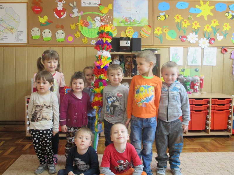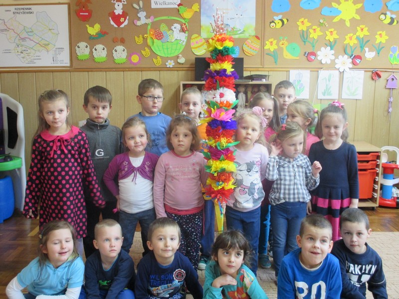 Tradycją naszego przedszkola stało się wykonanie kolorowej palmy wielkanocnej.