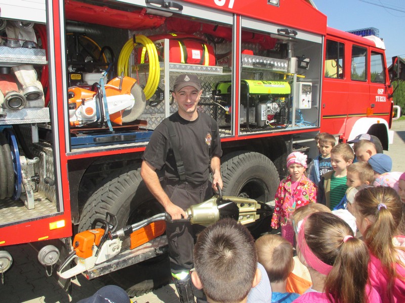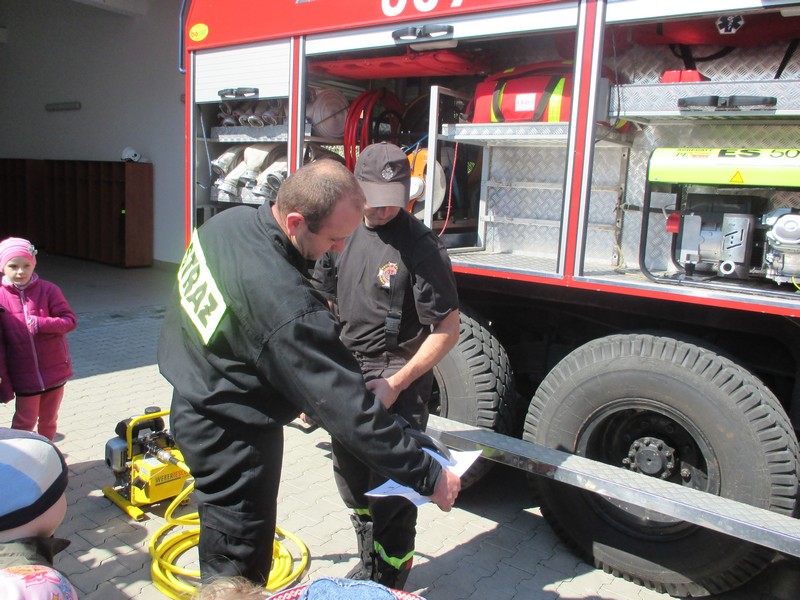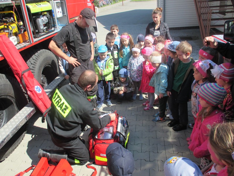 jakim sprzętem posługują się strażacy oraz jak zachować się w czasie pożaru,
