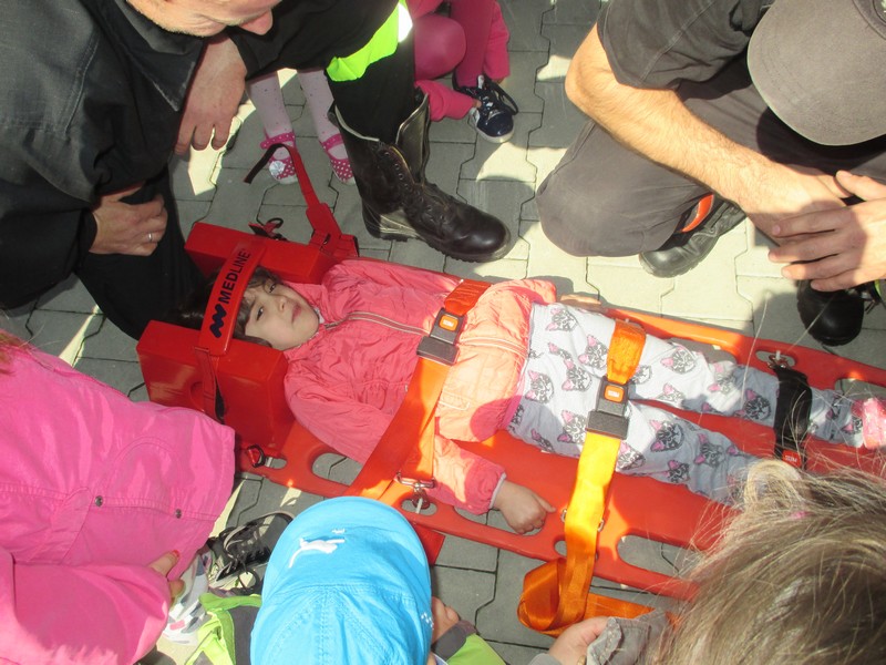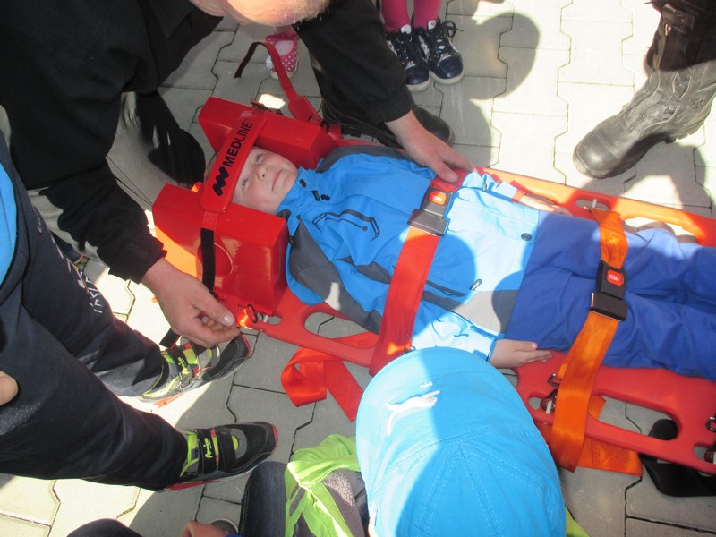 a ochotnicy zostali przypięci do deski przeznaczonej do transportu rannych.