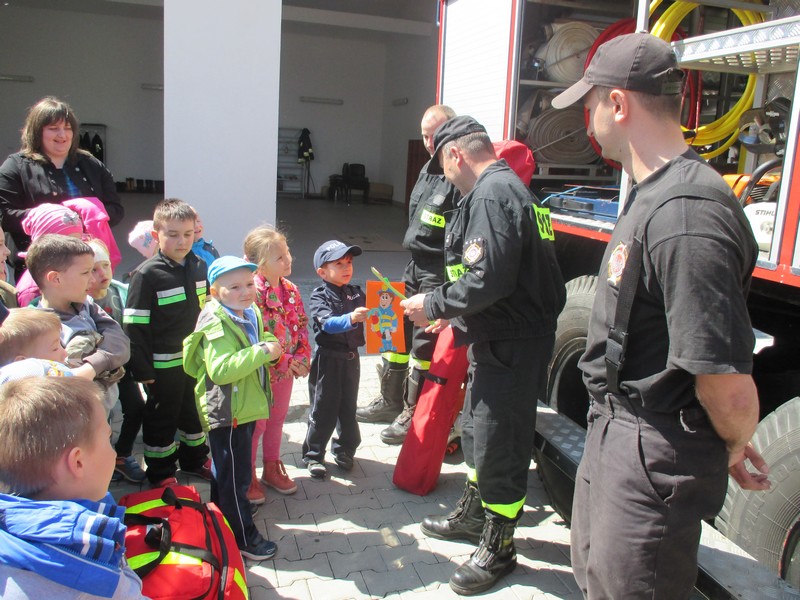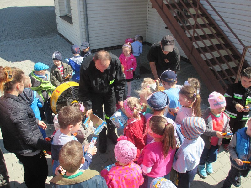 Na koniec strażacy podarowali przedszkolakom słodkie upominki