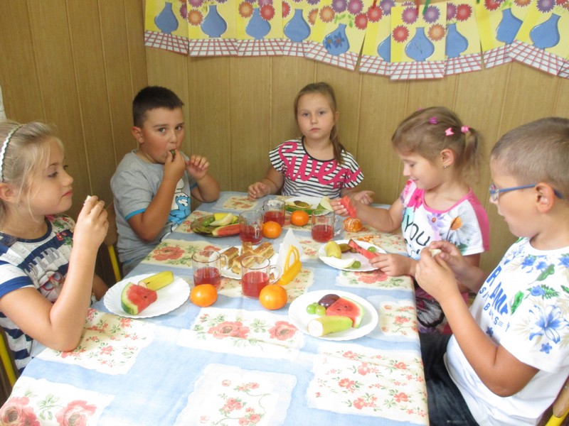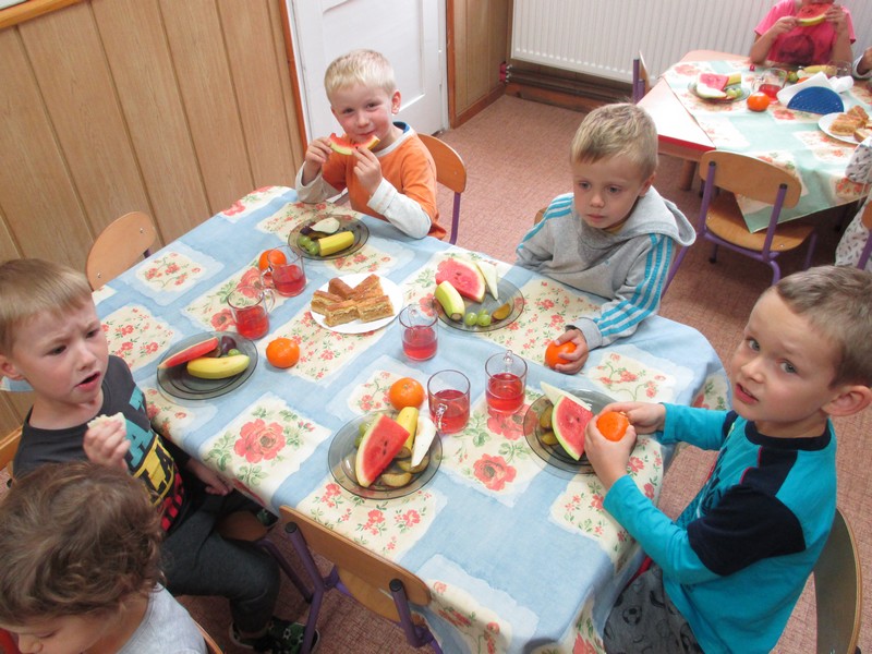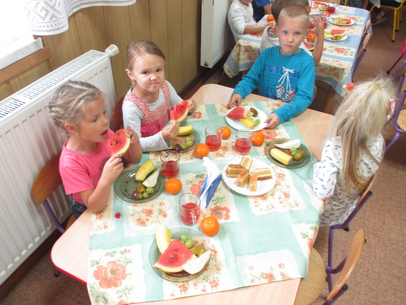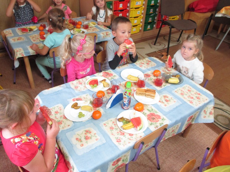 Po powrocie do przedszkola na dzieci czekała owocowa uczta.