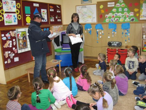 Rozmawiając z gościem, dzieci zrozumiały znaczenie znajomości własnego adresu,